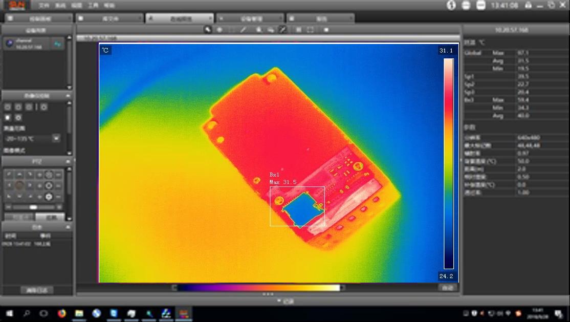 針對以上問題可利用紅外熱像儀對印刷電路板進行檢測,來對故障的電路進行熱成像對比,從而判斷故障部位,實現(xiàn)電路故障的快速檢測