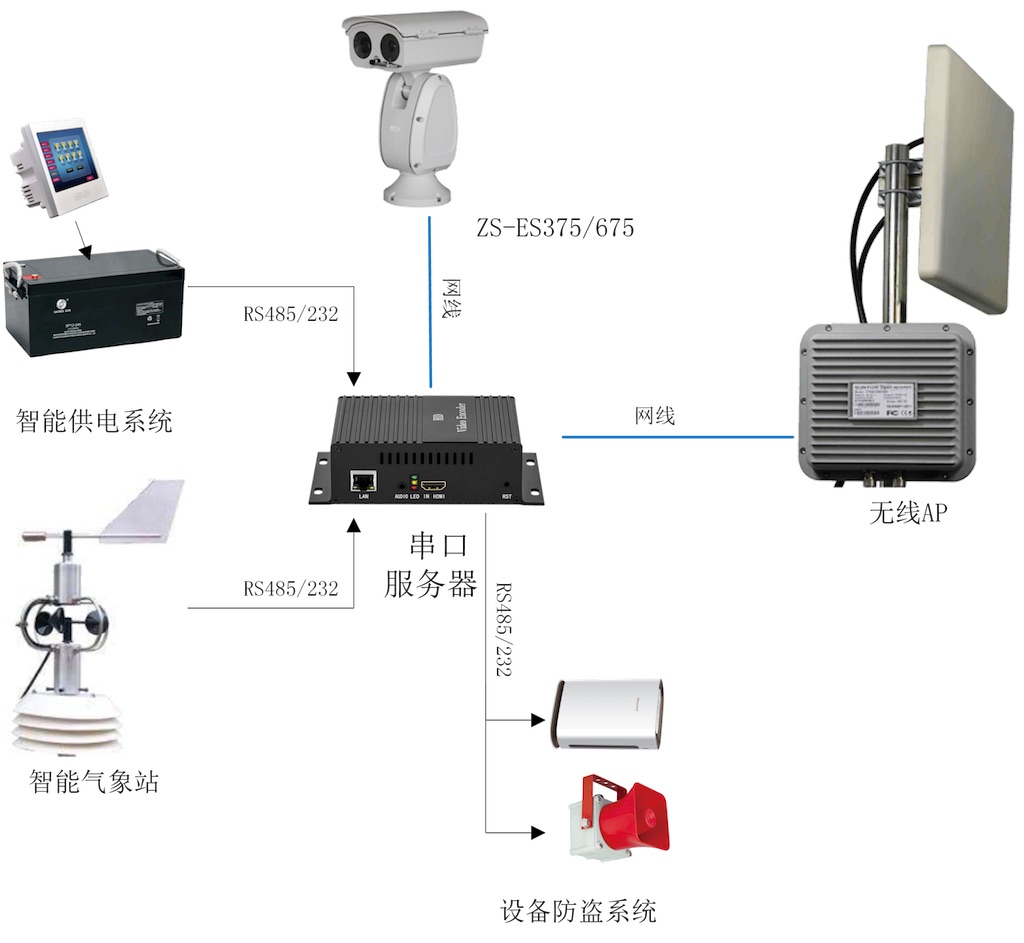 前端由紅外熱成像系統、采集定位系統、傳輸系統、設備防盜監控系統、智能供電系統、避雷接地系統、智能氣象站等組成。