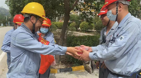 炎炎夏日,驕陽似火,一線職工在檢修現場揮汗如雨,后勤保障工作也是一場硬仗。在繁忙有序的檢修一線后方,有一股溫暖、堅定的力量,一直在背后默默的付出,支持著檢修工作順利進行。他們就是后勤保障工作者,檢修一線辛苦,后勤服務同樣任務艱巨,他們在幕后與檢修人員并肩作戰,把力量裝進職工碗里,把關愛送到大家心中。他們無微不至的關愛讓檢修人員切身感受到了陜化大家庭的關懷和溫暖。一分清涼,一聲問候,一片關愛,檢修慰問物品一箱箱送達現場,他們的衣襟早已濕透,傳遞的確是真情和關愛。在這里我們向所有為檢修工作辛勤付出的后勤人員道一聲:“你們辛苦了!”(電儀分廠  孫園園)