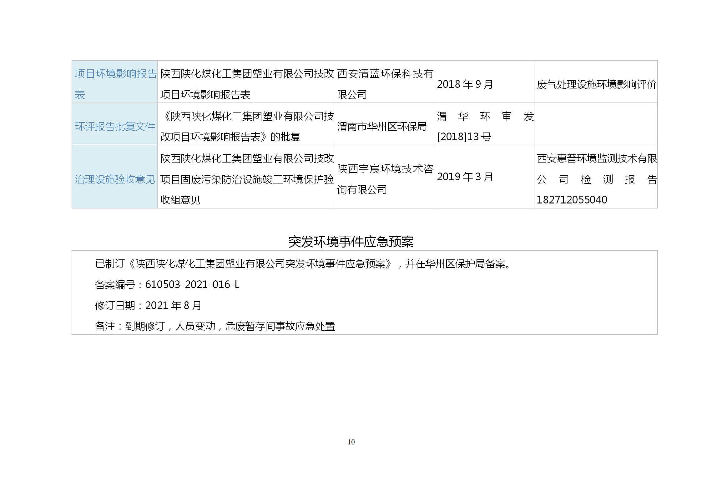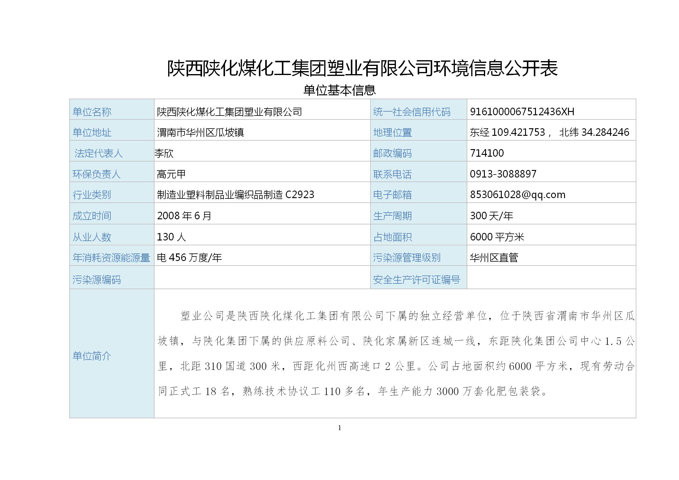 陜西陜化煤化工集團塑業公司環境信息公開表