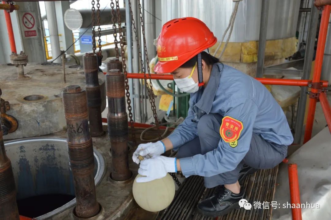 女子本弱為企則剛,穿上工裝便成了陜化的脊梁,走出家門就成了“花木蘭”,藍衣跨馬仗劍執(zhí)甲,巾幗不讓須眉穿梭在現(xiàn)場,用芊芊細手為企業(yè)編織起一張守護的安全網(wǎng)。